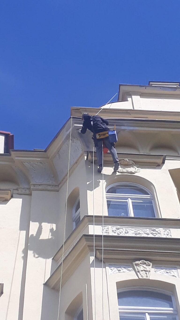 Na těžko dostupných místech jsme schopni nabídnout řešení pomocí horolezecké techniky. Máme proškolený a zkušený tým pracovníků ve výškách.