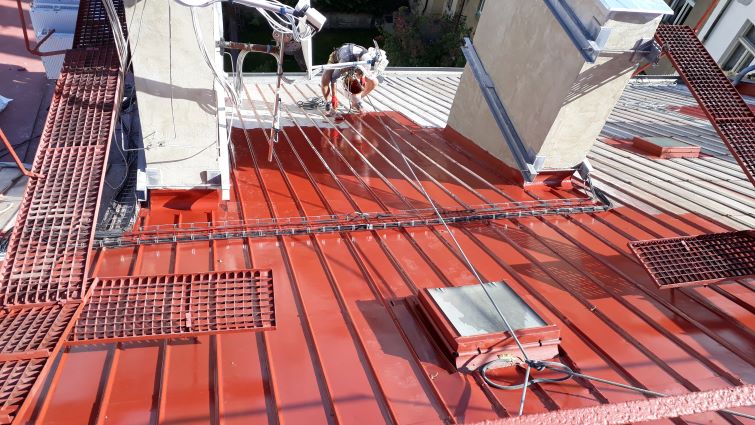 Broušení, čištění a nátěr střechy nad Riegrovými sady.